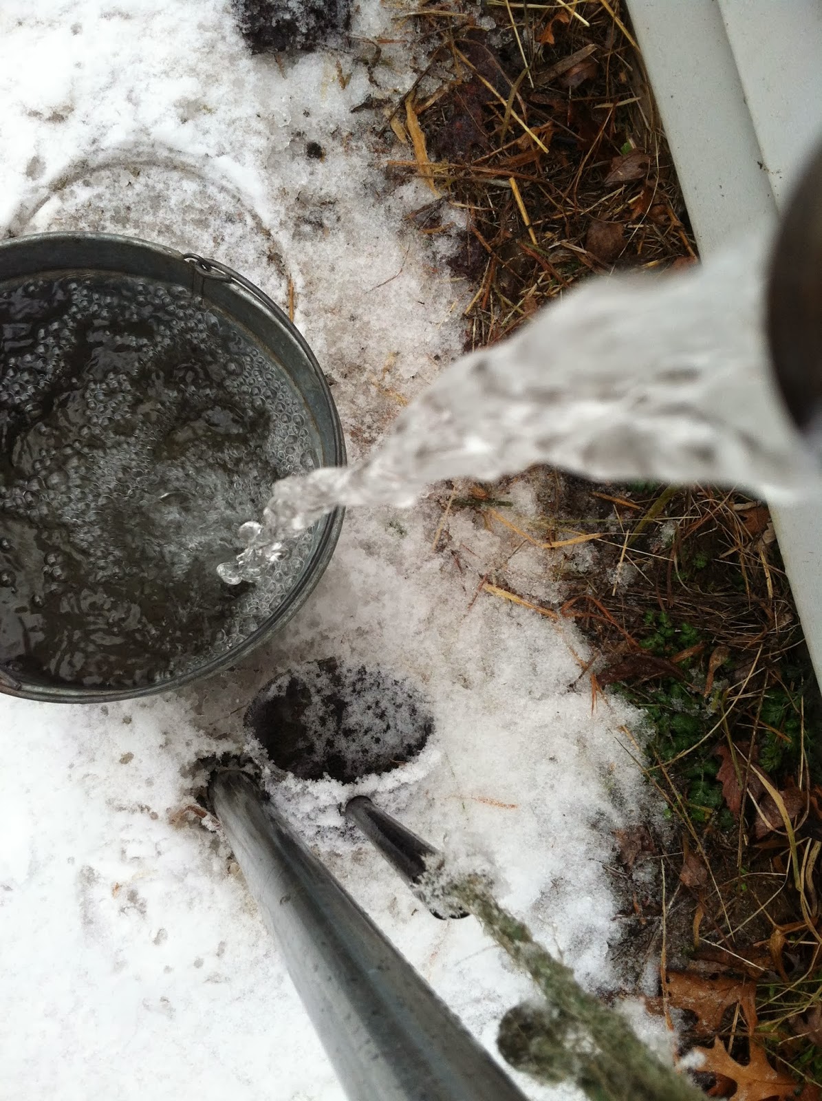 After I filled the horse trough, goat water bucket, chicken waterer, and 'duck bucket', Harvey and I headed back to the house to thaw out!